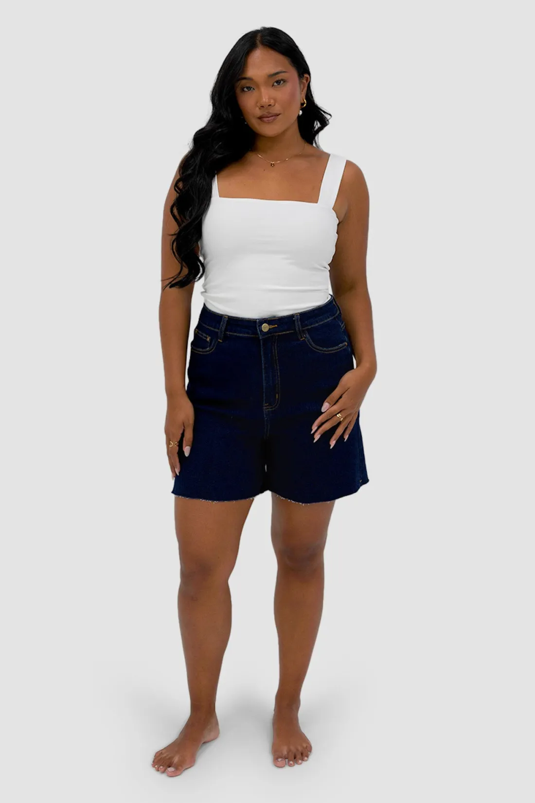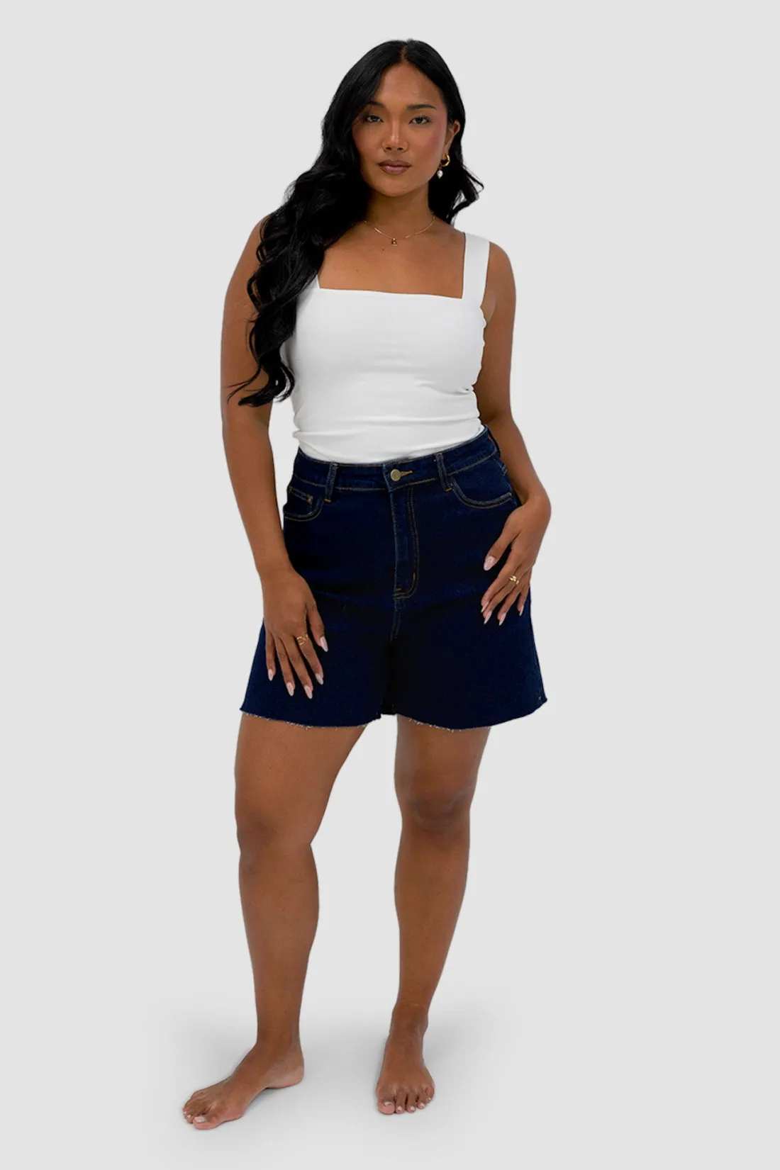 - They’re the comfiest denim shorts you’ll ever try on, stretchy with the most perfect fit, no more feeling like you can’t sit down in denim – these are a dream