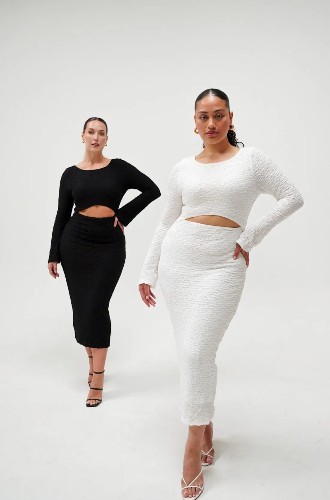 The dress you’ve all been waiting for just landed – our Marcello is the new IT GIRL dress for winter. Made from our beautiful & stretchy crinkled fabric that contours your body in all the right places – this dress is the perfect occasion piece you’ve been searching for! Pair with boots and a trench for a winter event or heels and a statement bag for a night out.