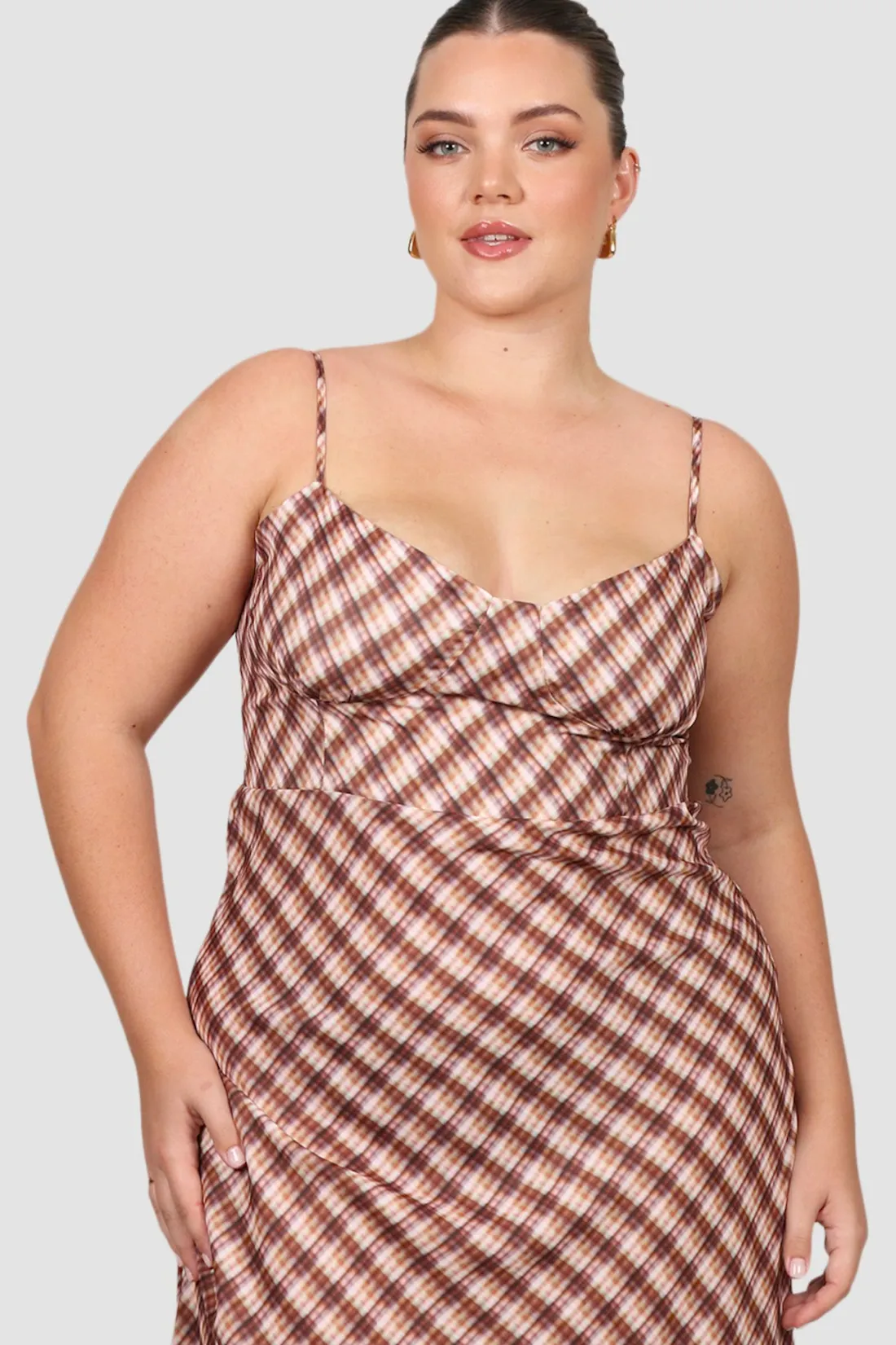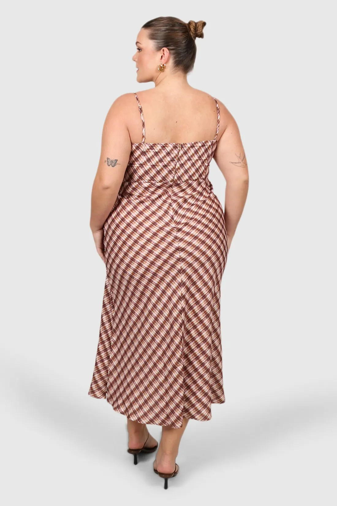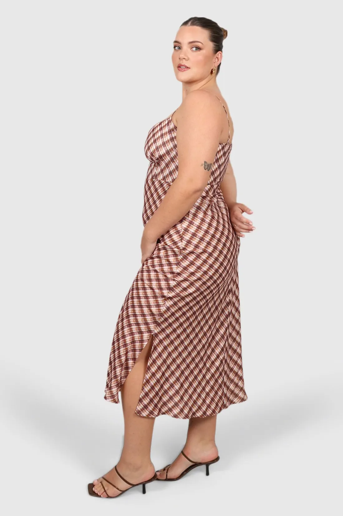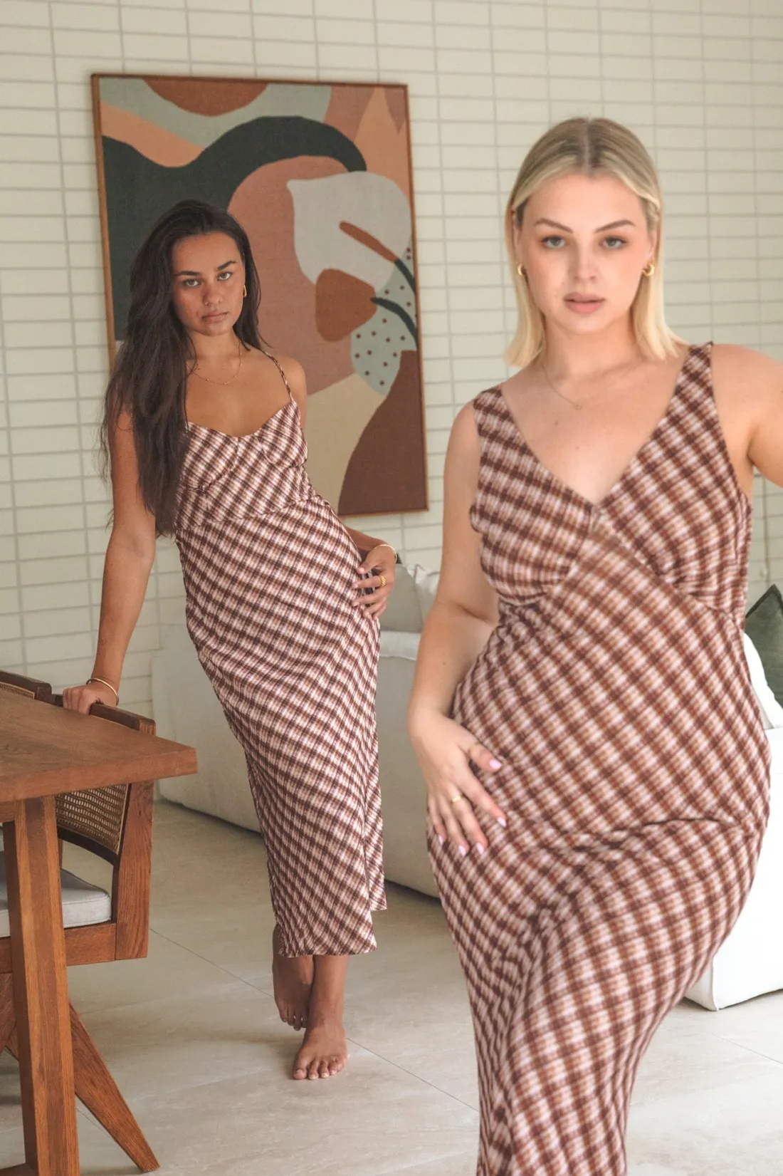 Note: our Margot Slip Dress Check and Natalia Dress Check are made from different materials. Margot in our silky slip material and Natalia in our stretchy mesh material.