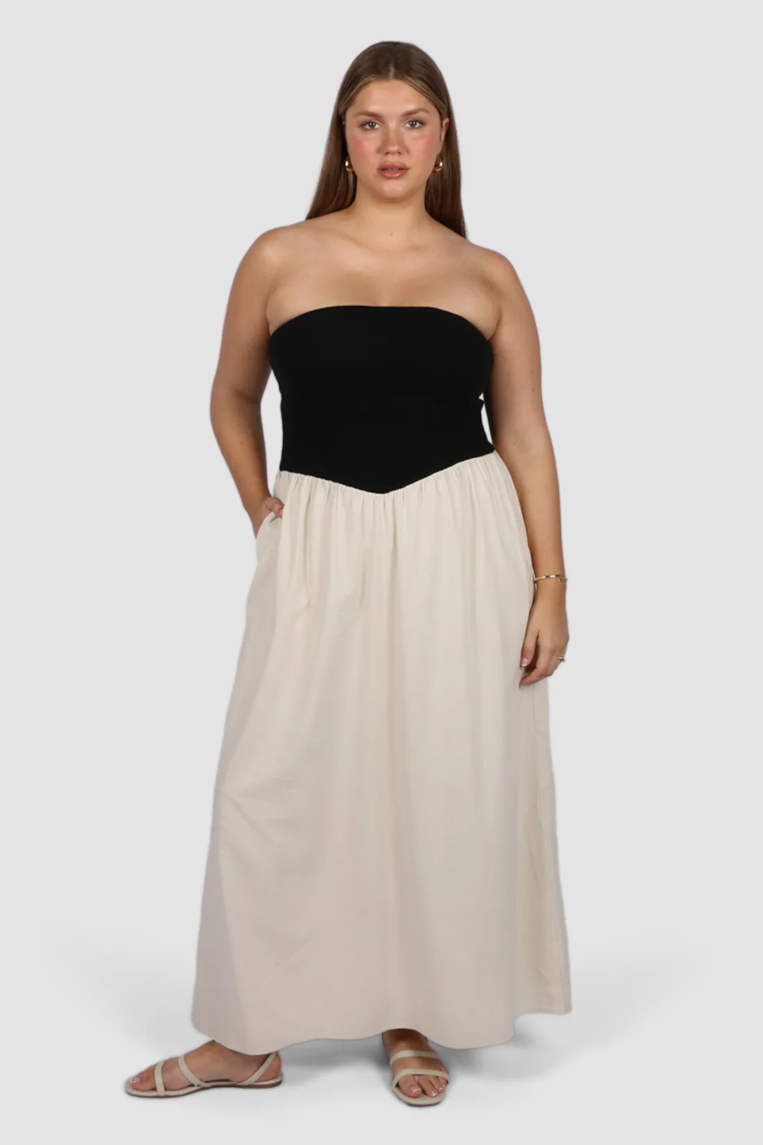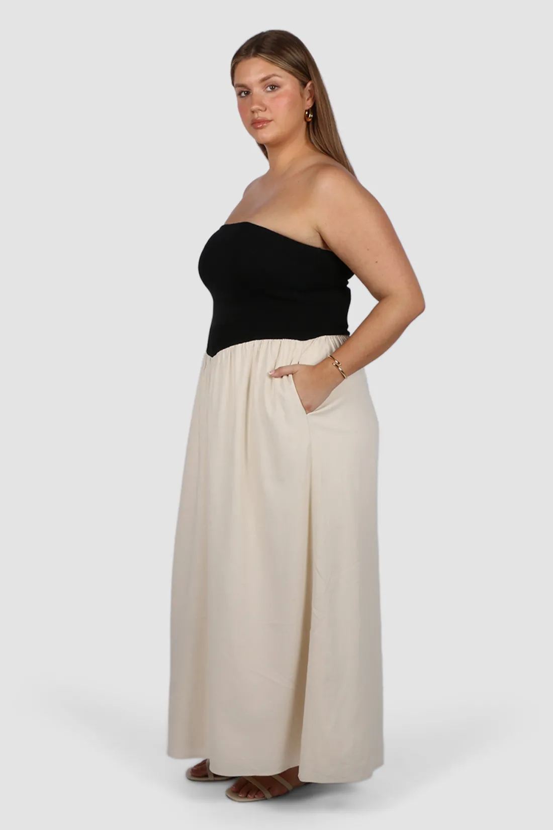 The weather is getting warmer and we are getting summer ready in our Vella dress. Featuring all the must haves – a stretch bodice, lined flowy skirt, and most importantly pockets! Level up your style game pairing her with gold accessories, cute heels and your favourite handbag for a balmy night out on the town.