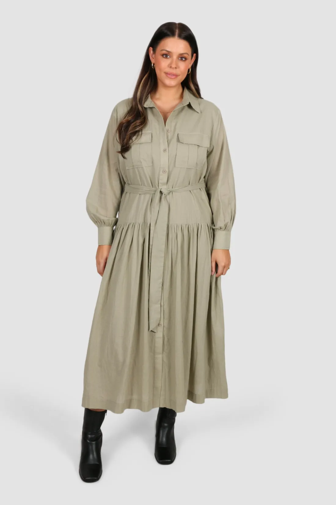 Say hello to new – our Wisteria Dress is giving all things modern and refined. With a collared neckline, a relaxed fit, an adjustable waist tie and an overall chic and sophisticated vibe we can’t fault this new addition. For a stylish winter look, our Wisteria Dress can be paired with your favourite boots and a classic trench coat. Get ready to make a statement with this stunning piece!