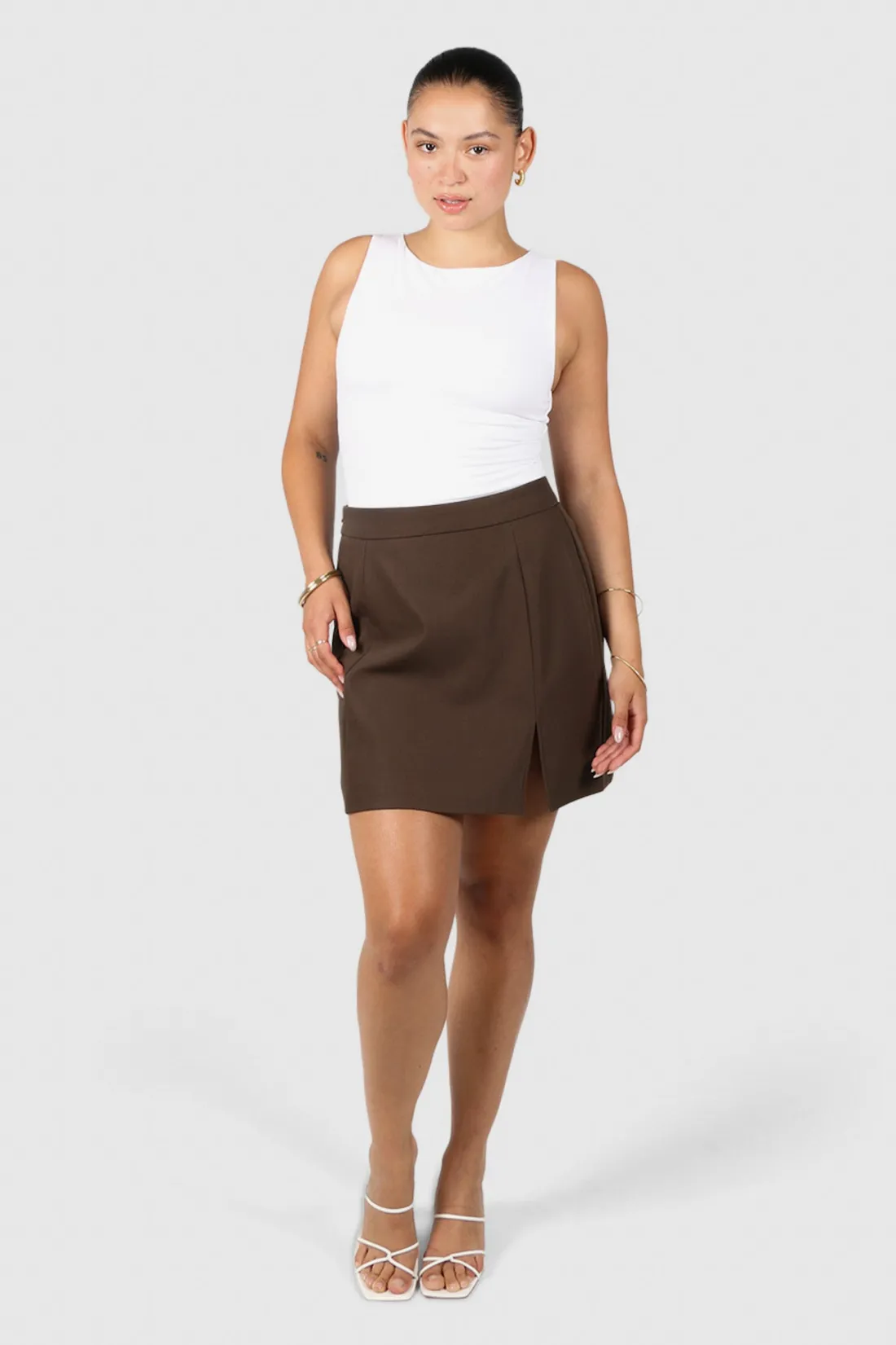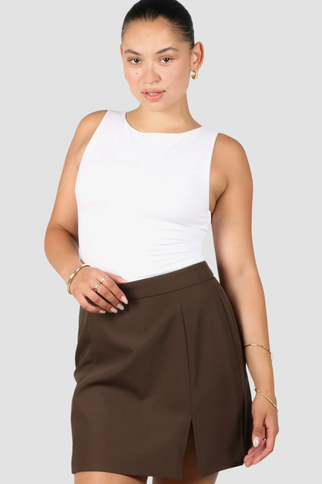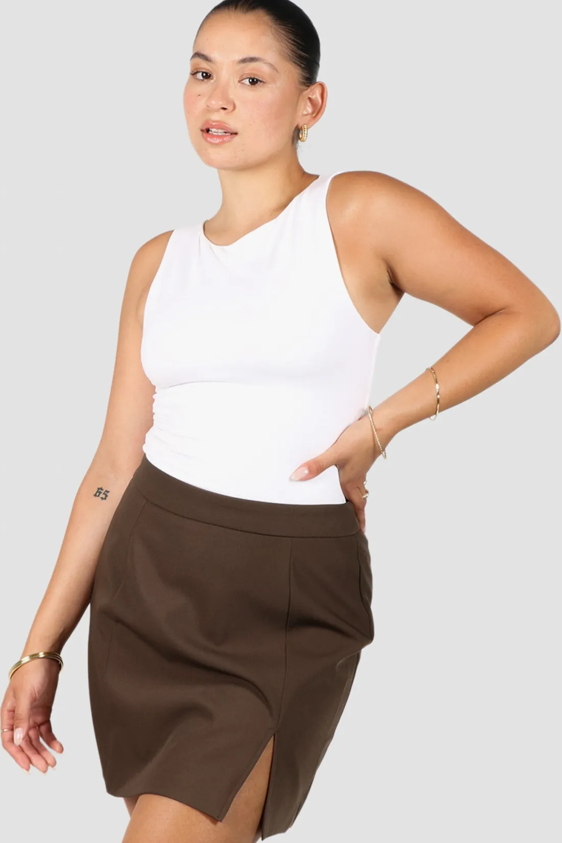 The perfect mini you need in your capsule wardrobe! Do you struggle to find mini skirts that are the ideal length? then look no further! We’ve spent time perfecting the length, fit and fabric of this skirt so you don’t have to. Our Ana Skirt embodies all things sleek, soft & comfortable – made from the same dreamy fabric as our best-selling Porscha Blazer, this stunner will pair with any cute top in your wardrobe and take you right through spring into summer!