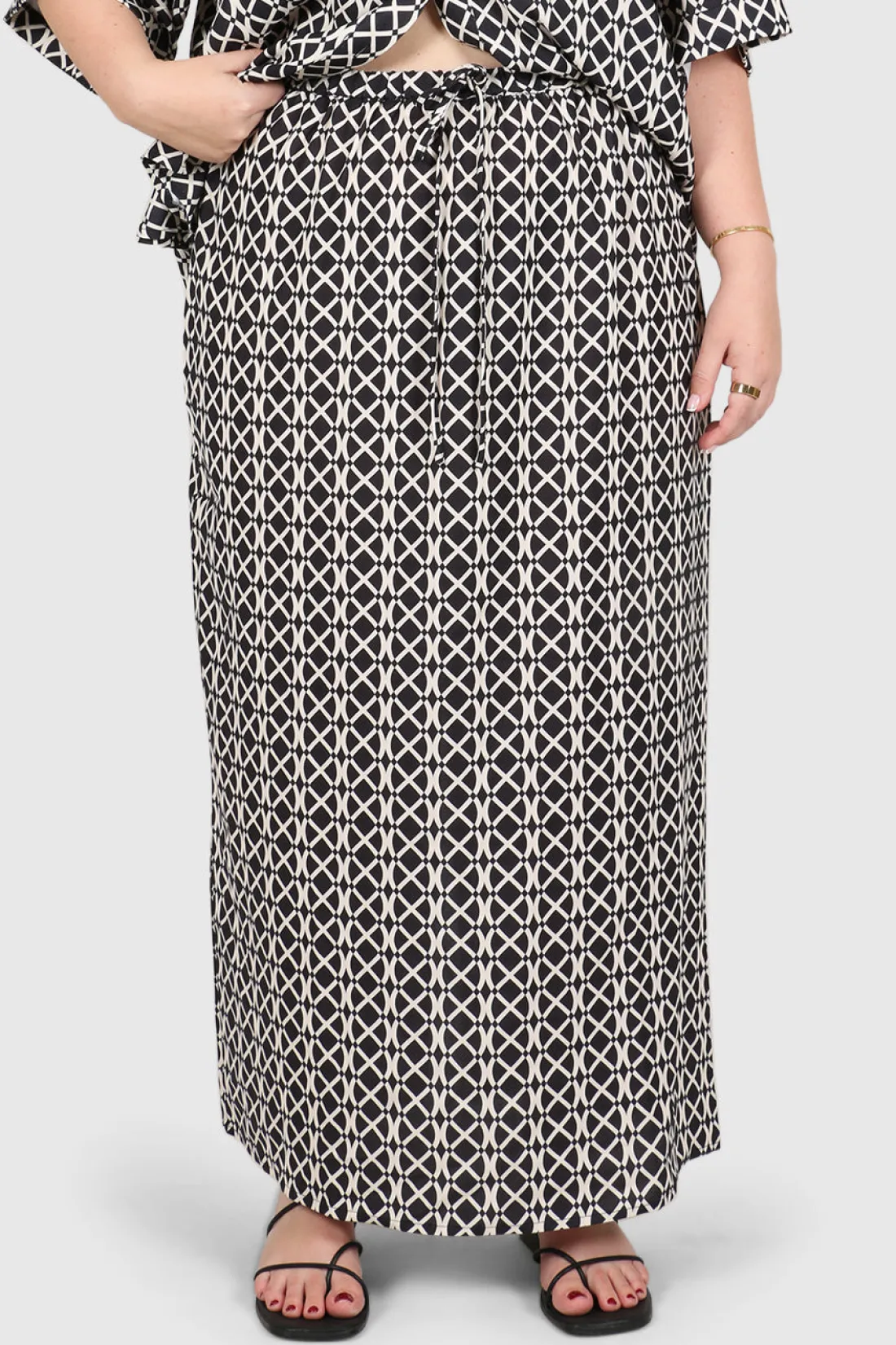 Introducing Anaia – the lightweight maxi skirt of your dreams. Designed in our very own exclusive geo-print we predict this one to be a sell-out. Pair her with the matching Inda Shirt or any of your Fayt basic tops for the ultimate cool girl fit!