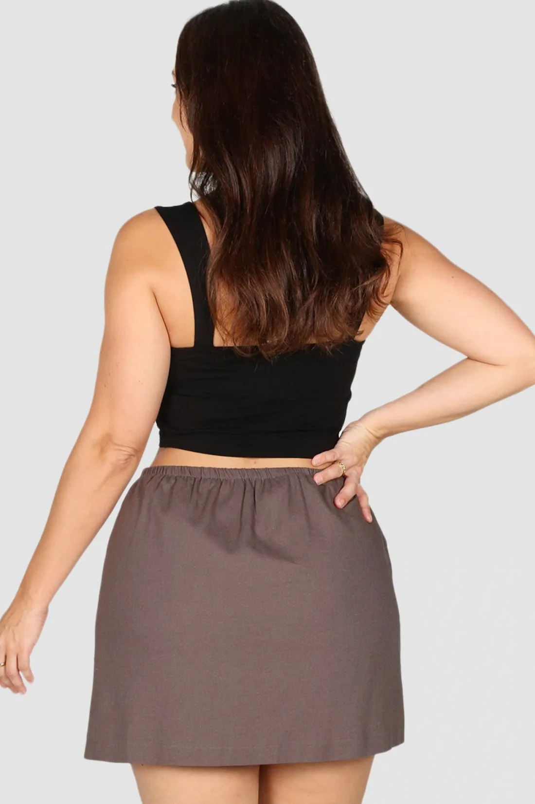 A capsule wardrobe must have for the warmer seasons: the perfect lightweight mini skirt. Our Zola will be that piece you reach for again and again, she’ll pair with anything and everything in your wardrobe. Dress this piece up with your fave top and heels for a night out with the gals or keep it casual and cute with some sneakers or chunky sandals. Featuring a completely elastic waist band and the perfect length – she’ll be your new fave.
