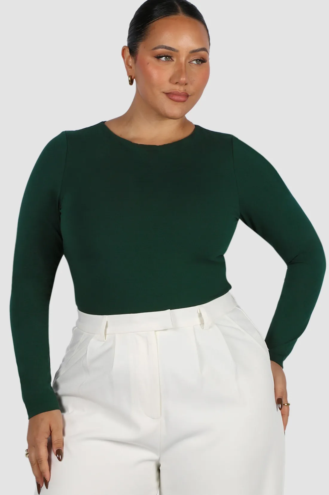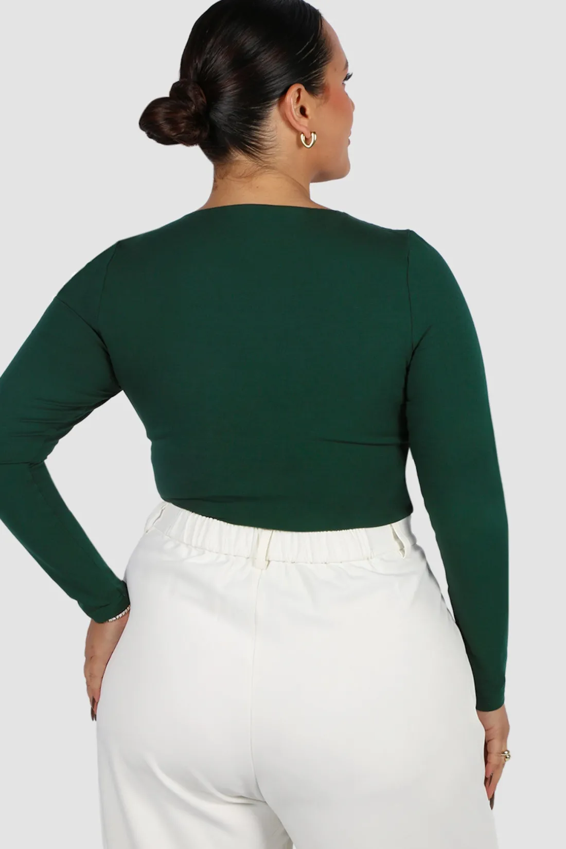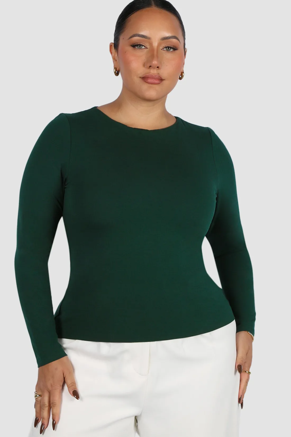 The ultimate buttery, basic, pair-with-everything long-sleeve top of your dreams! Tuck our buttery into your fave pair of Fayt jeans, wear her untucked with tights and sneakers or fold her up for a crop vibe with a mini skirt and heels! Made from our signature, stretchy dreamy fabric you know and love, this piece will hold you in like a piece of shapewear and be that top you reach for in your wardrobe on repeat all season