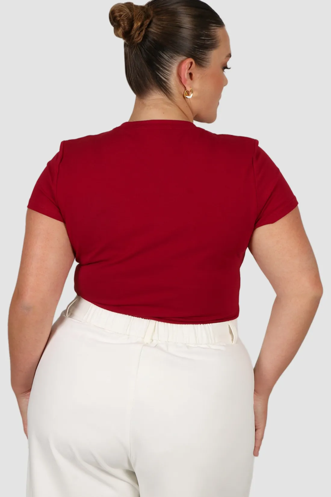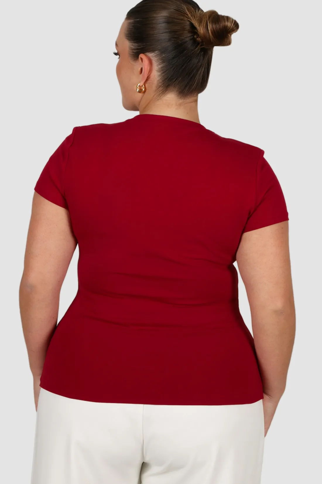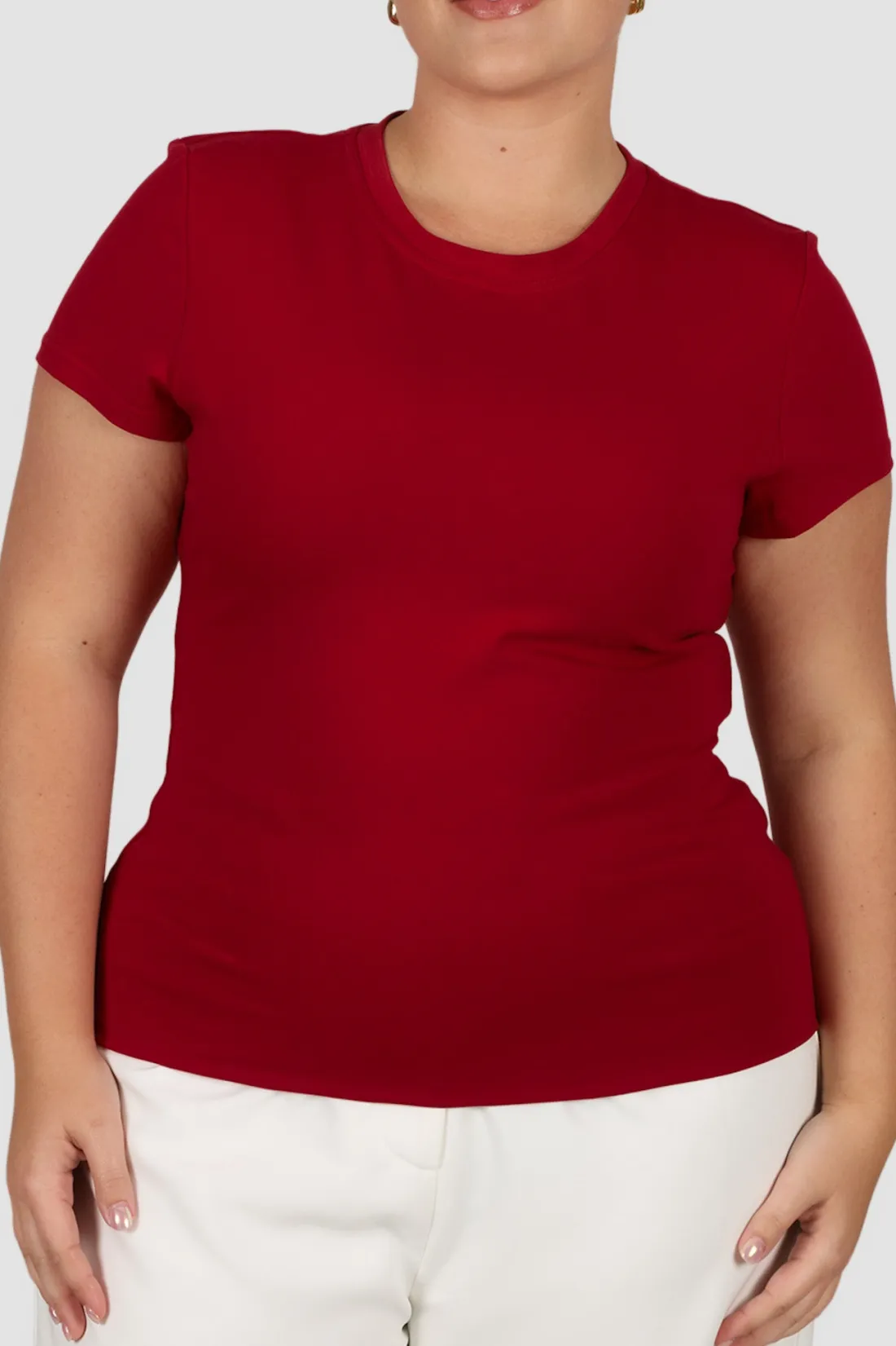 The ultimate buttery, basic, pair with everything tee of your dreams! Tuck our buttery tee into your fave pair of Fayt jeans, wear her untucked with tights and sneakers or fold her up for a crop vibe with a mini skirt and heels! Made from our signature, stretchy dreamy fabric you know and love, this piece will hold you in like a piece of shape wear and be that tee you reach for time and time again!