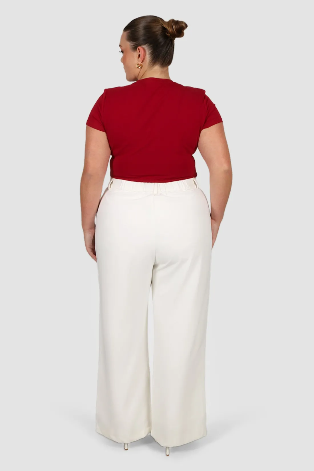 - Mid length cut – perfect to tuck into high waisted bottoms (refer to our untucked photo for length reference)