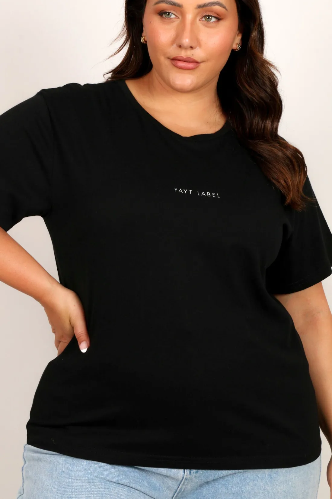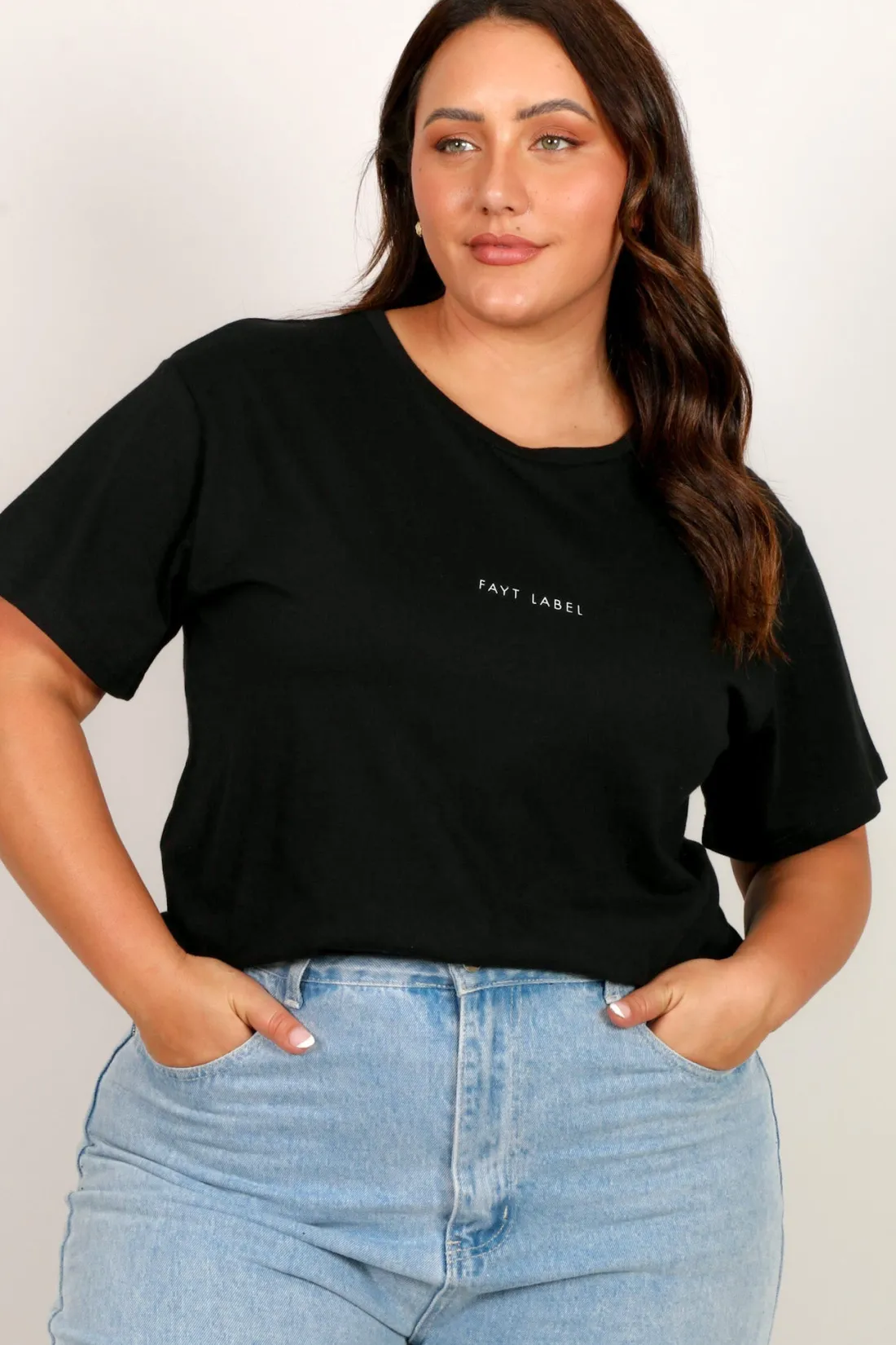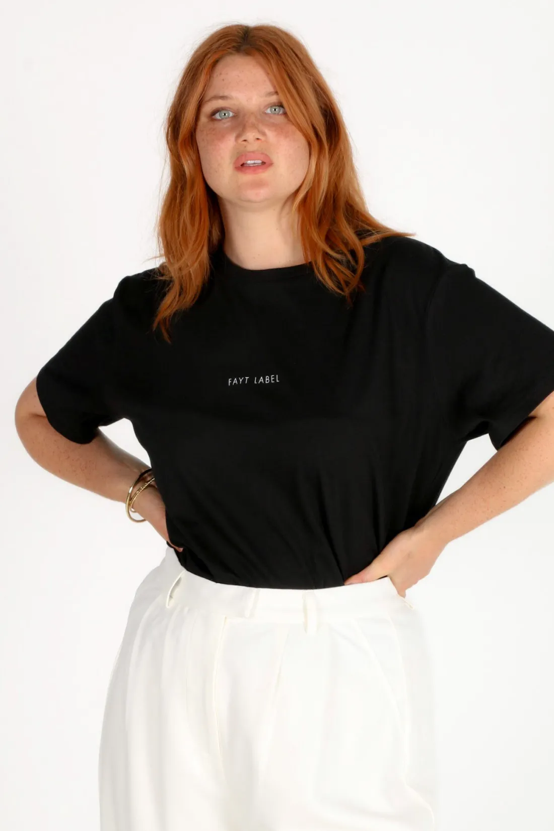Who doesn’t love a classic fit tee that you can wear all year round – made from a soft cotton material this tee features a classic round neckline, t-shirt sleeve and full-length design and cute FAYT LABEL logo on the front. This tee is perfect to wear with all your denim pieces!