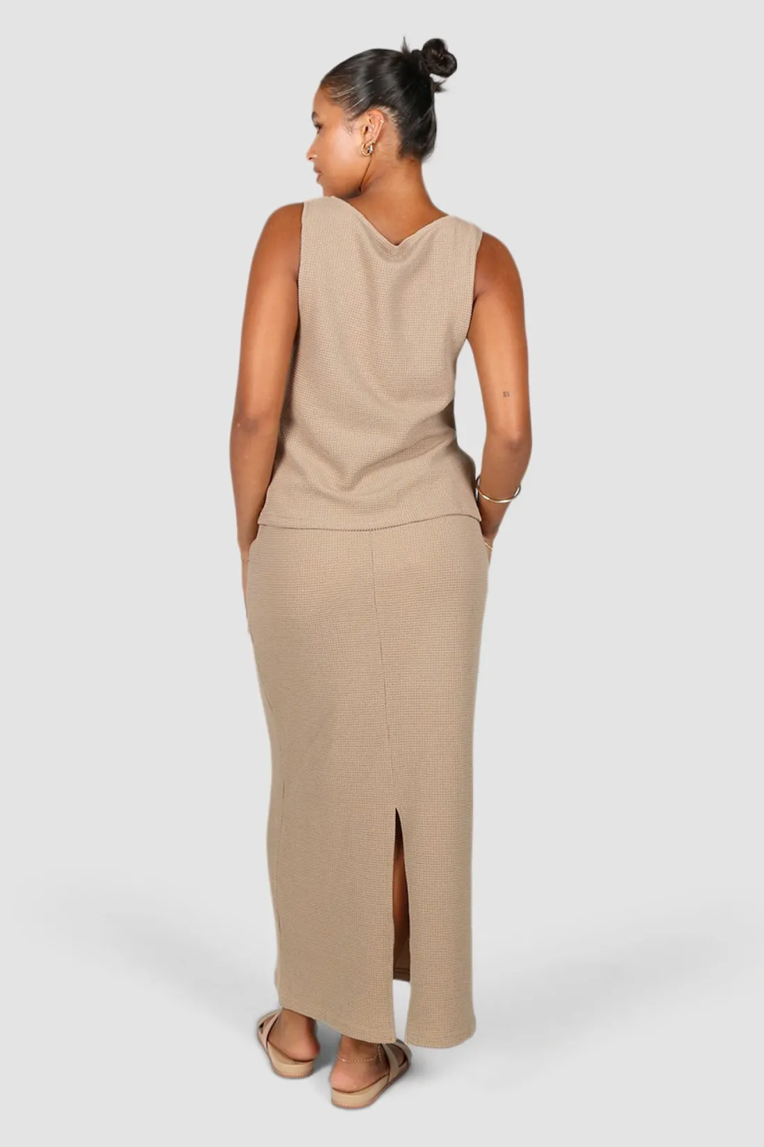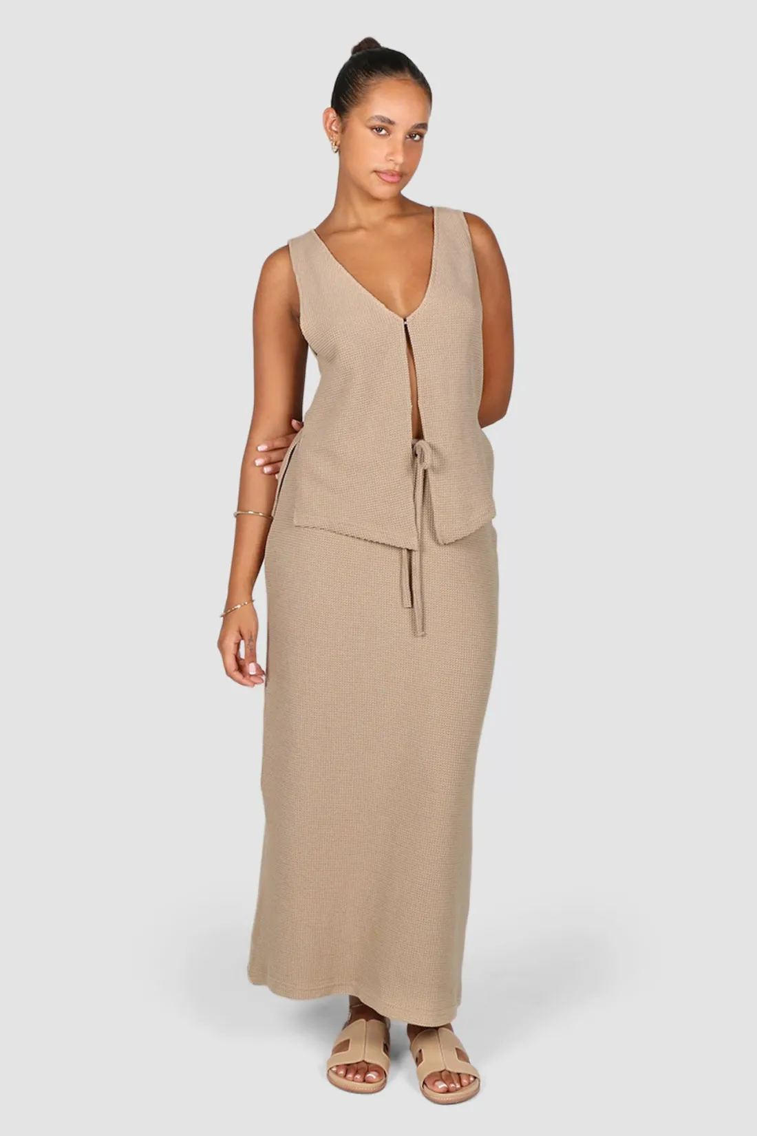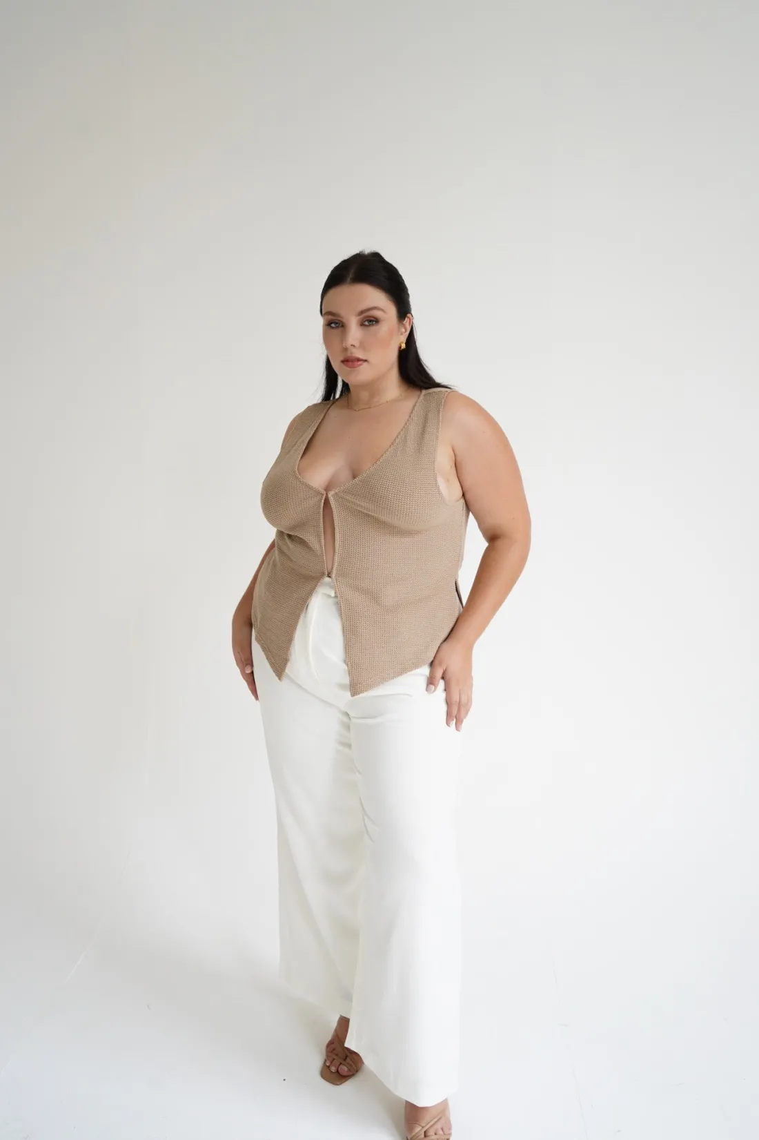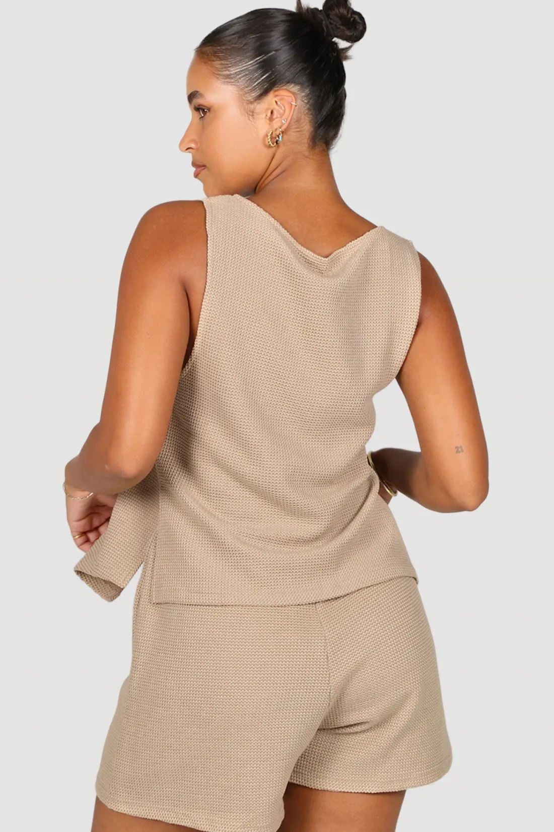 Made from stretchy textured waffle knit fabric our Evie Top is giving all things comfy and cute! With a v neck design, hood and eye detail and long line cut – this top is set to sell out. Pair perfectly with any fayt bottoms