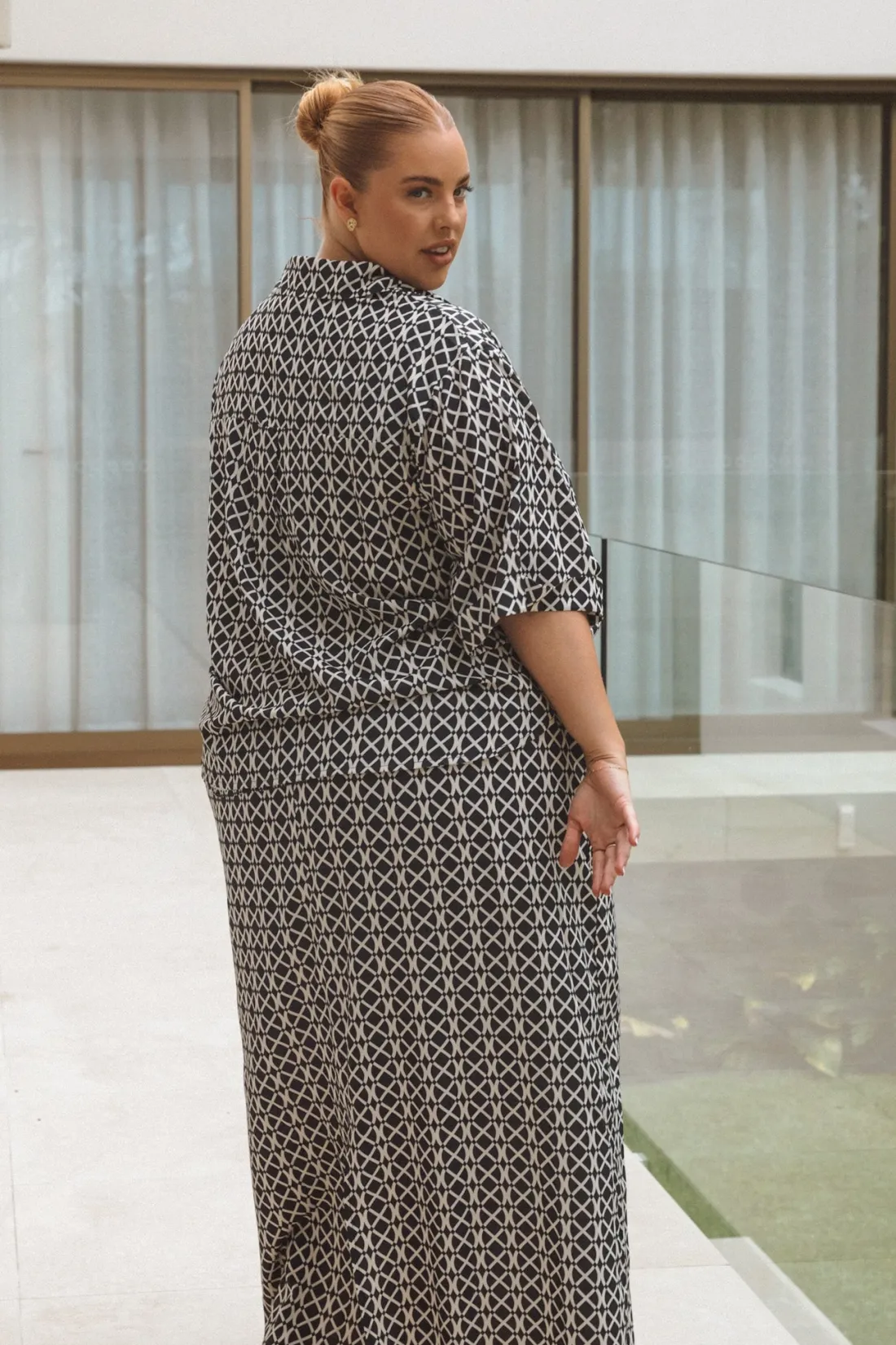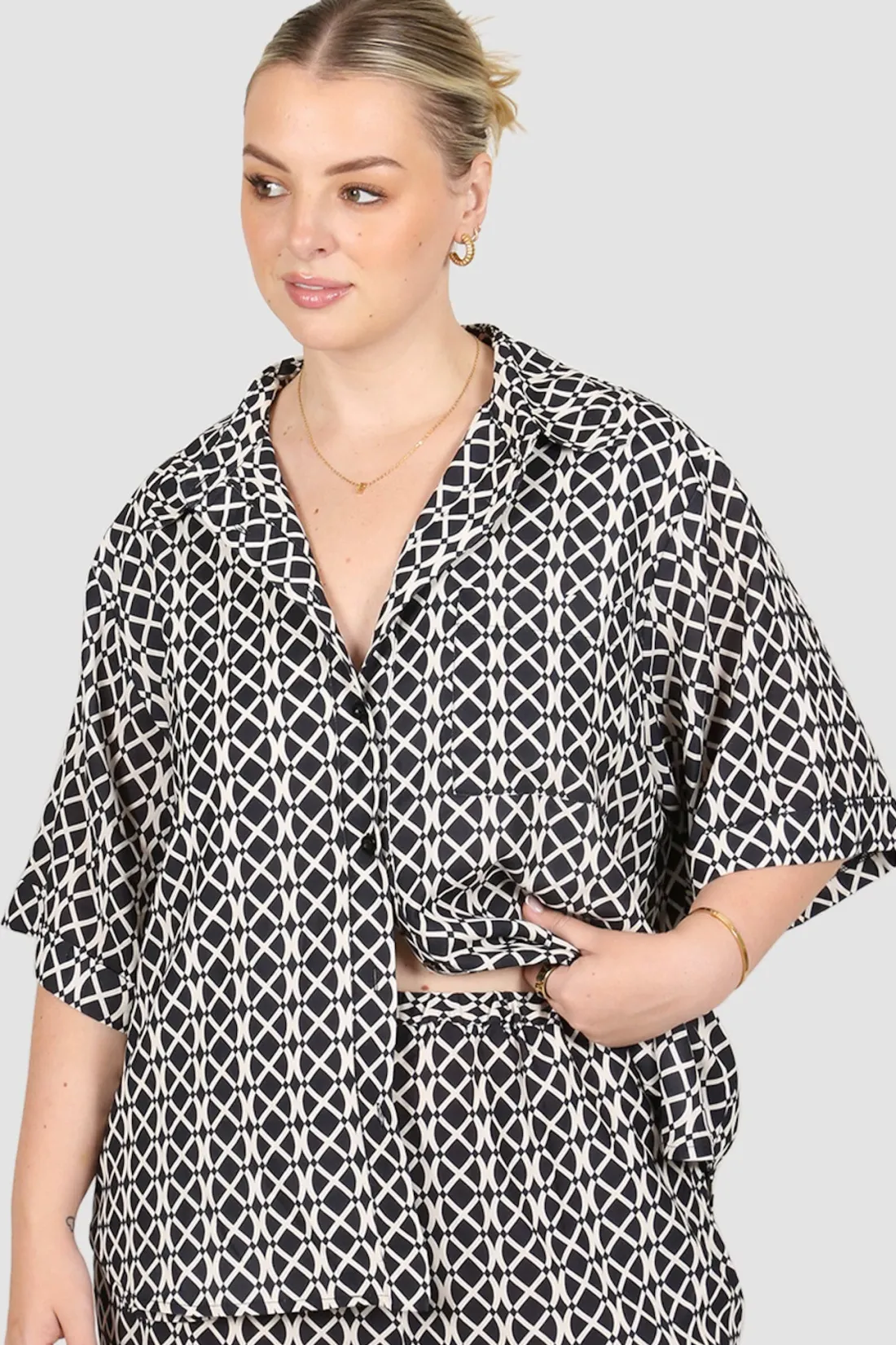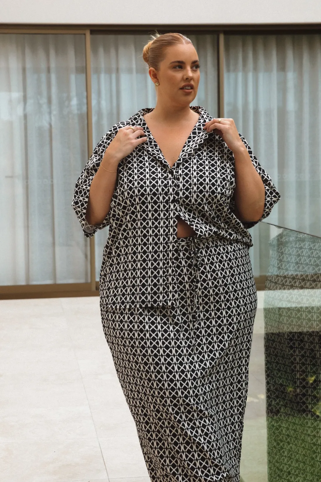 Our Inda Shirt is giving all the vacay vibes and we are all about it. Designed in our very own exclusive geo-print we predict this one to be a sell-out. Pair our Inda Shirt with the matching Blanco Pant or Anaia skirt for a vibey co-ord look.
