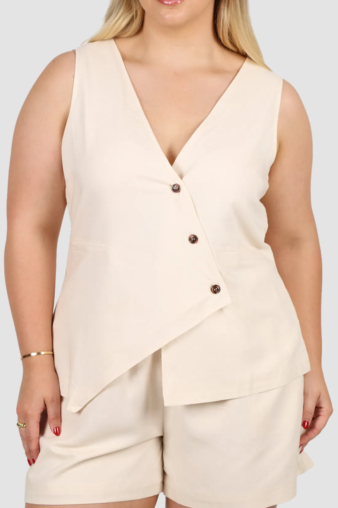 Looking for the next super cute top to rock all summer? Look no further than our Nixie Top! Crafted from a soft lightweight fabric blend, she is not only cute but oh so comfy. The off-centre button detail paired with the V neckline creates stunning shape and gives all the luxe vibes.