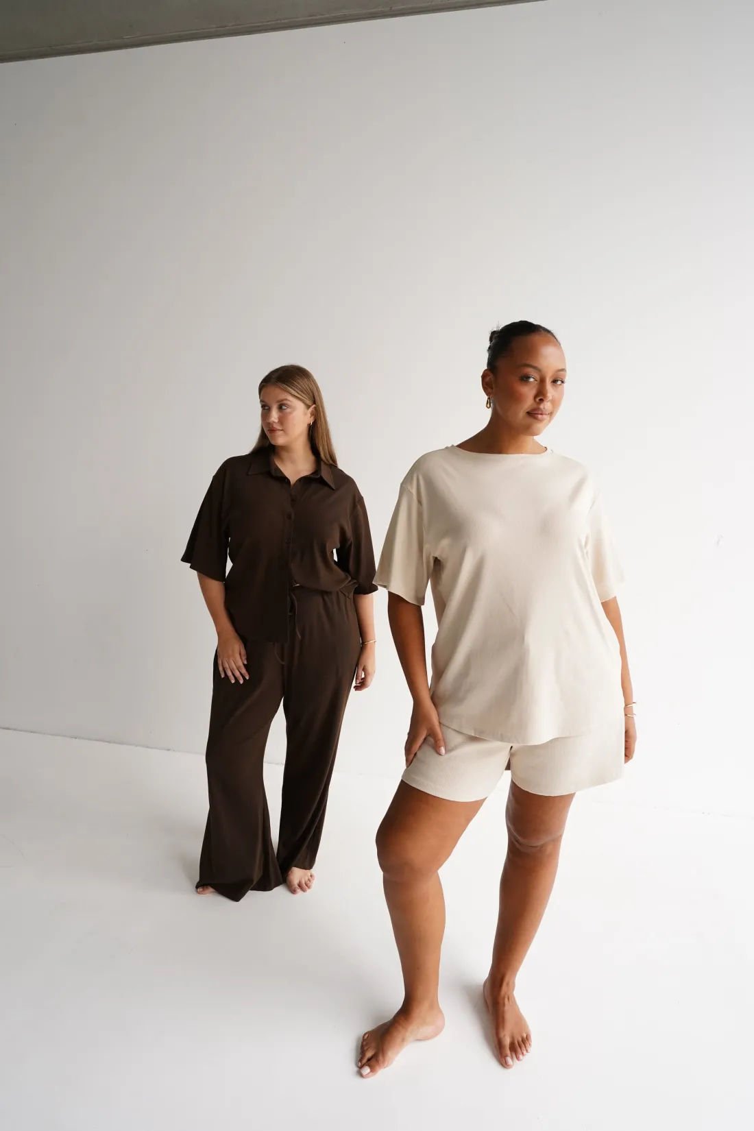 Who doesn’t love an ultra comfy set? We love how versatile our pieces are in taking you from day to night with ease. Not only is our Nolyn Tee the comfiest thing you will ever slip onto your body – you can also dress her up with jewellery and heels for a classy yet casual vibe. Sunset drinks with the girls? Say less.