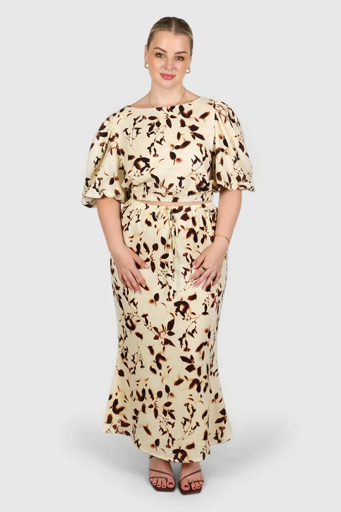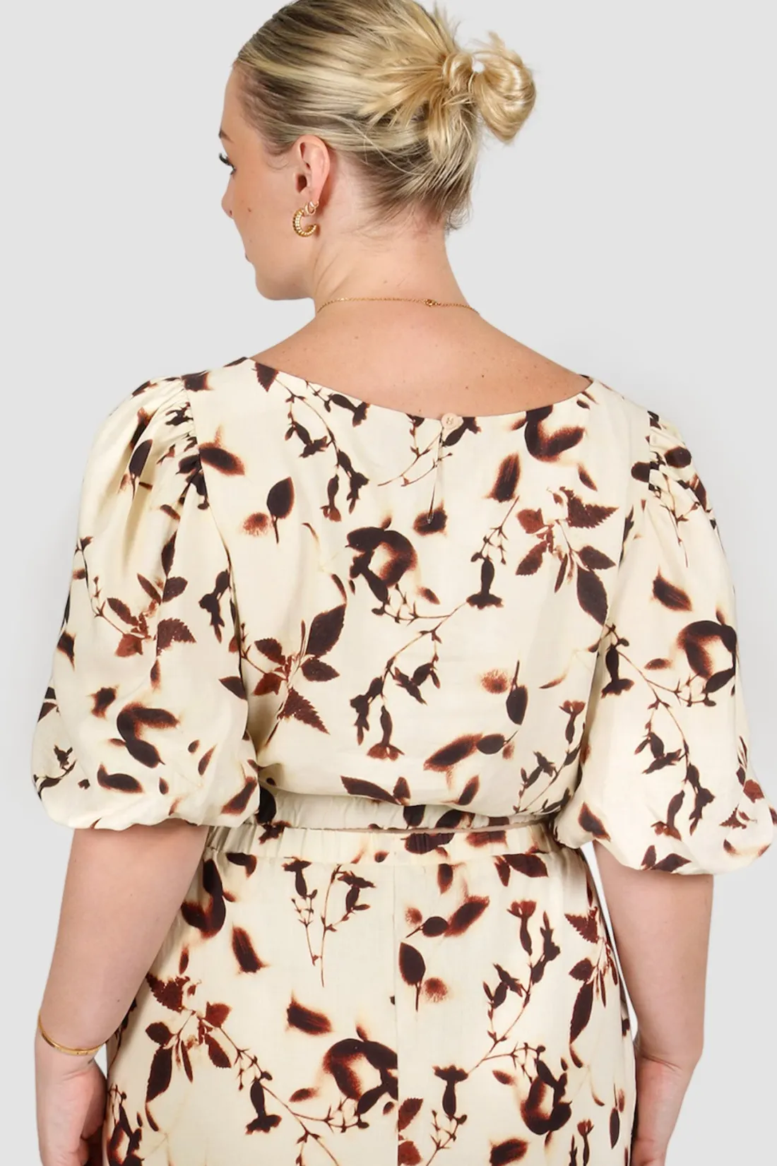 Riona – a top that needs no introduction but well give her one anyway! With a cute puff sleeve design, high neck cut for that full coverage vibe and relaxed fit this co-or piece will be your first choice when reaching for an occasion outfit piece. Wear with either of our matching bottoms for a complete look.